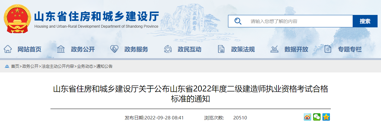 原文标题:山东省住房和城乡建设厅关于公布山东省2022年度二级建造师执业资格考试合格标准的通知