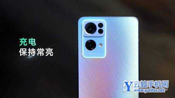 OPPO Reno7 Pro 的星环呼吸灯可以在启动游戏时进行短促闪烁、短信/来电时缓慢闪烁、充电时保持常亮。