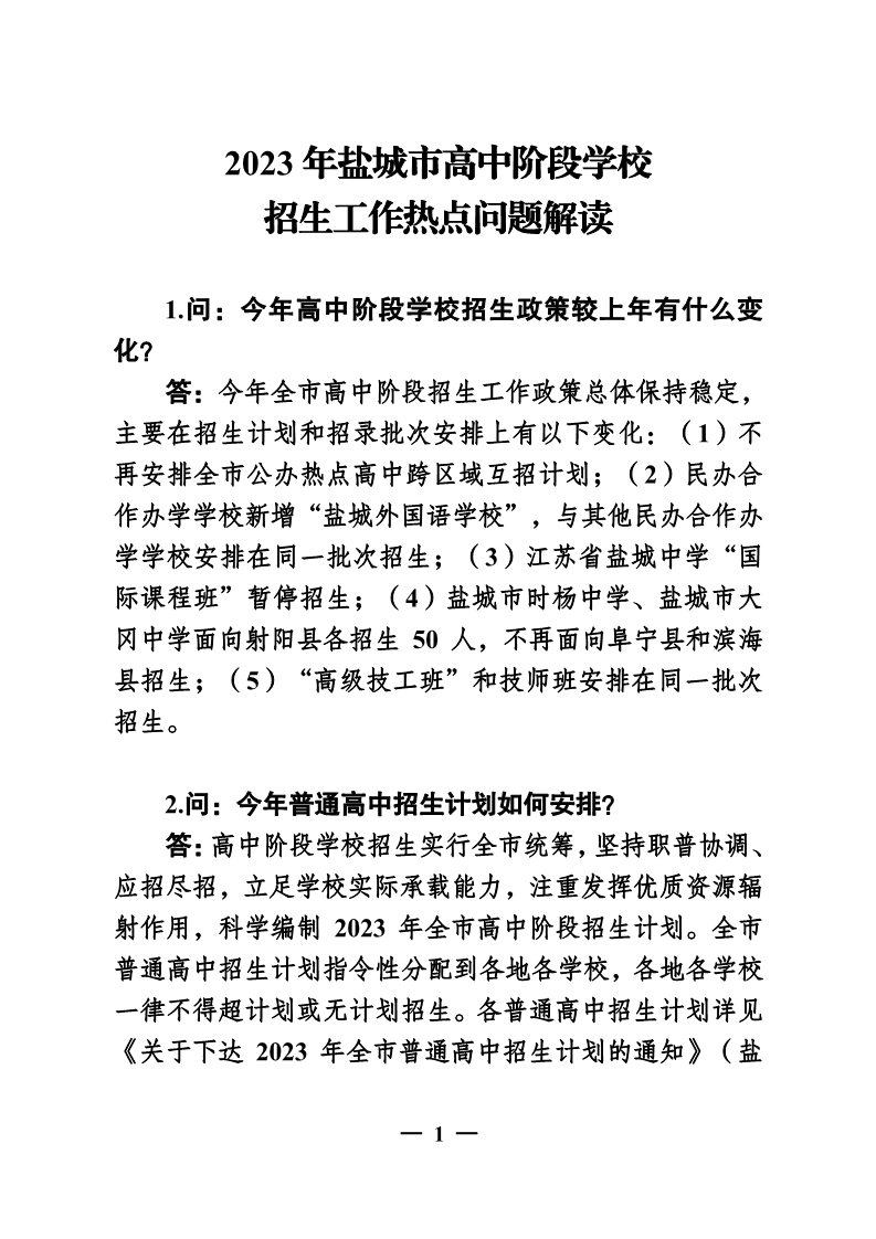2023年江苏盐城市高中阶段学校招生工作热点问题解读06-10