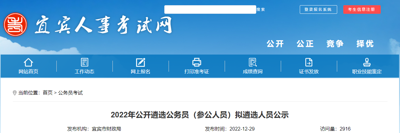 根据《2022年度宜宾市市直机关公开遴选公务员公告》的规定,现将拟遴选人员予以公示。