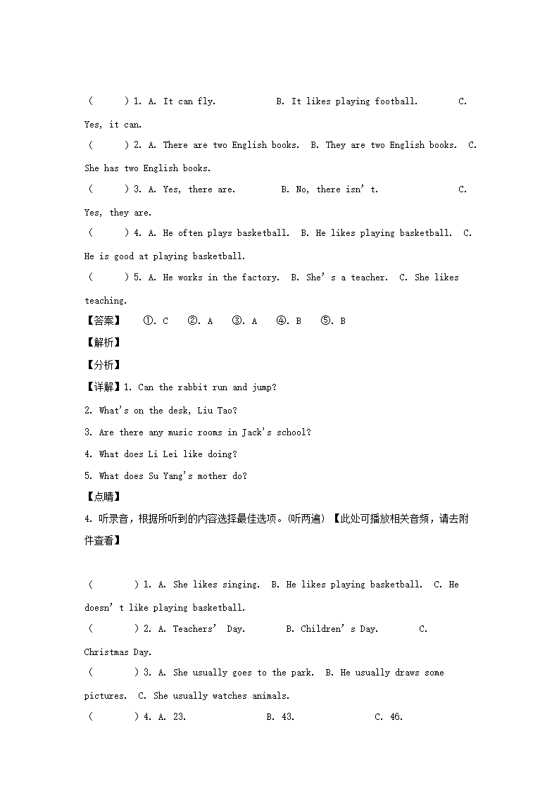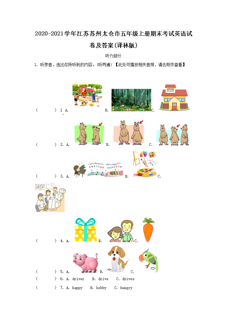 2020-2021学年江苏苏州太仓市五年级上册期末考试英语试卷及答案(译林版)(Word版)09-14
