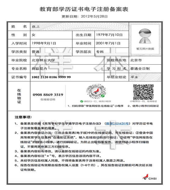 附件3:教育部学历证书电子注册备案表(样本)