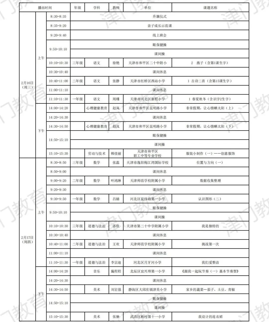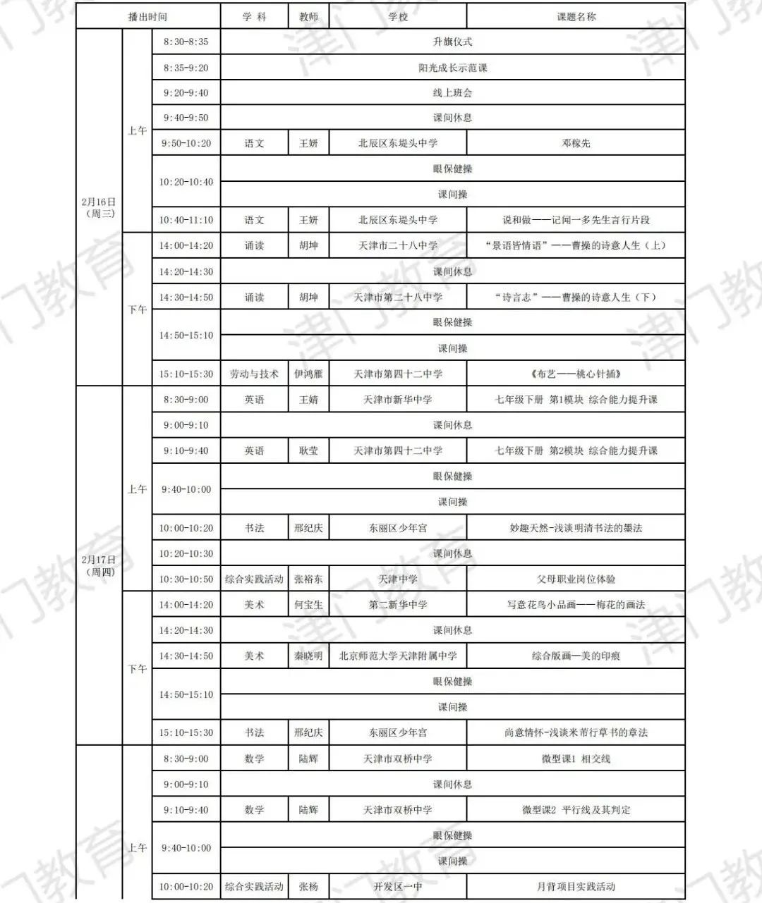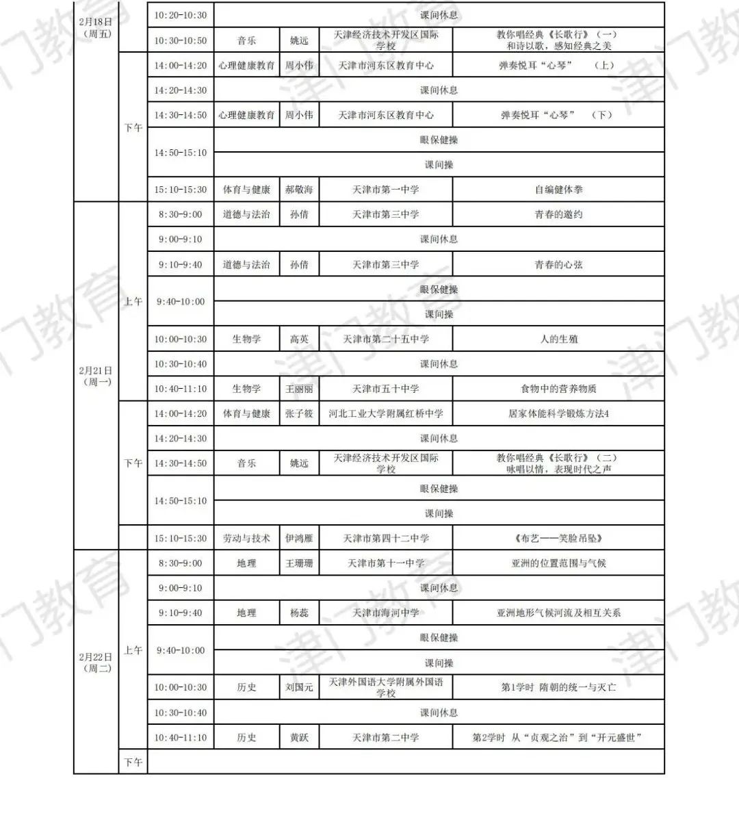 天津市教育委员会:2022年天津市中小学线上教学启动(附2月16日-22日课表)03-04
