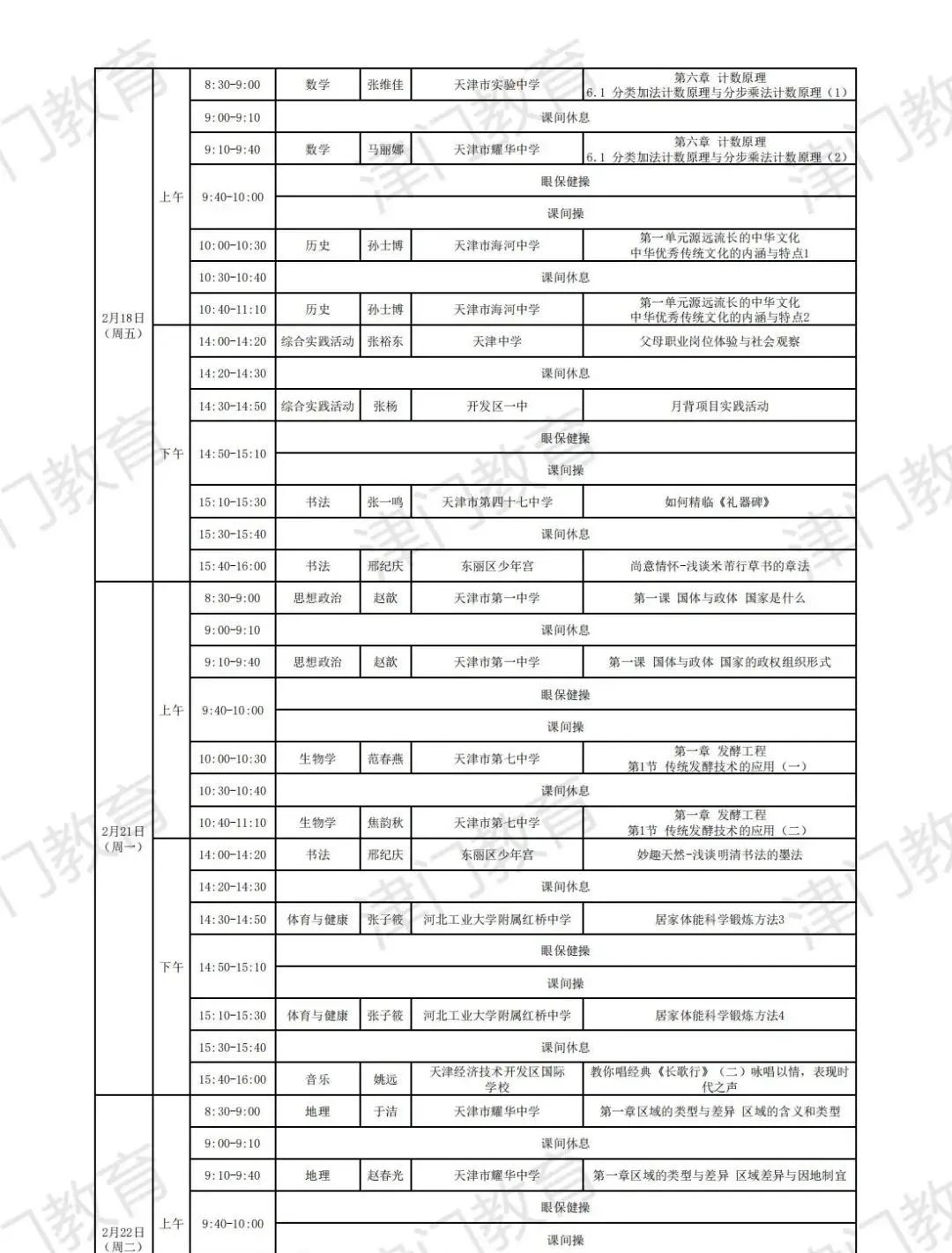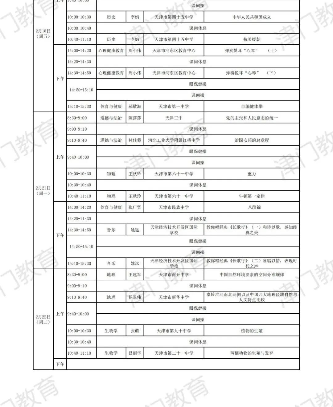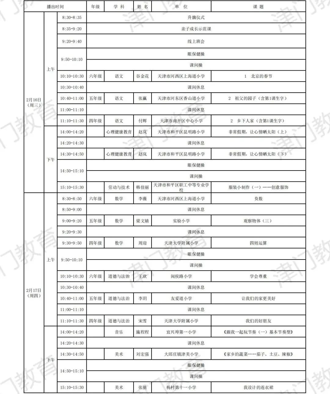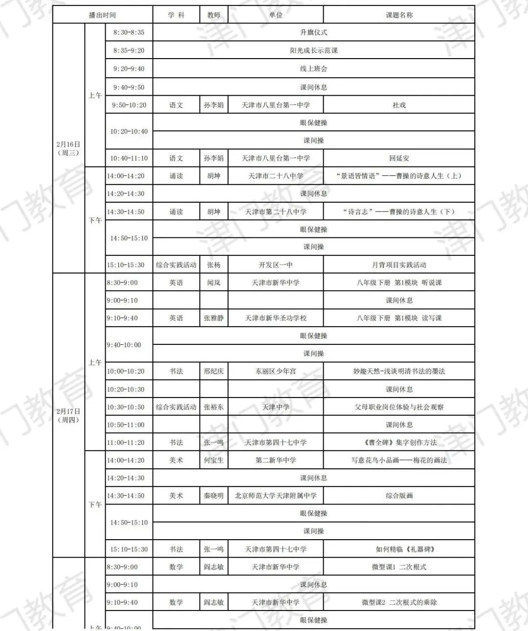 天津市教育委员会:2022年天津市中小学线上教学启动(附2月16日-22日课表)03-04