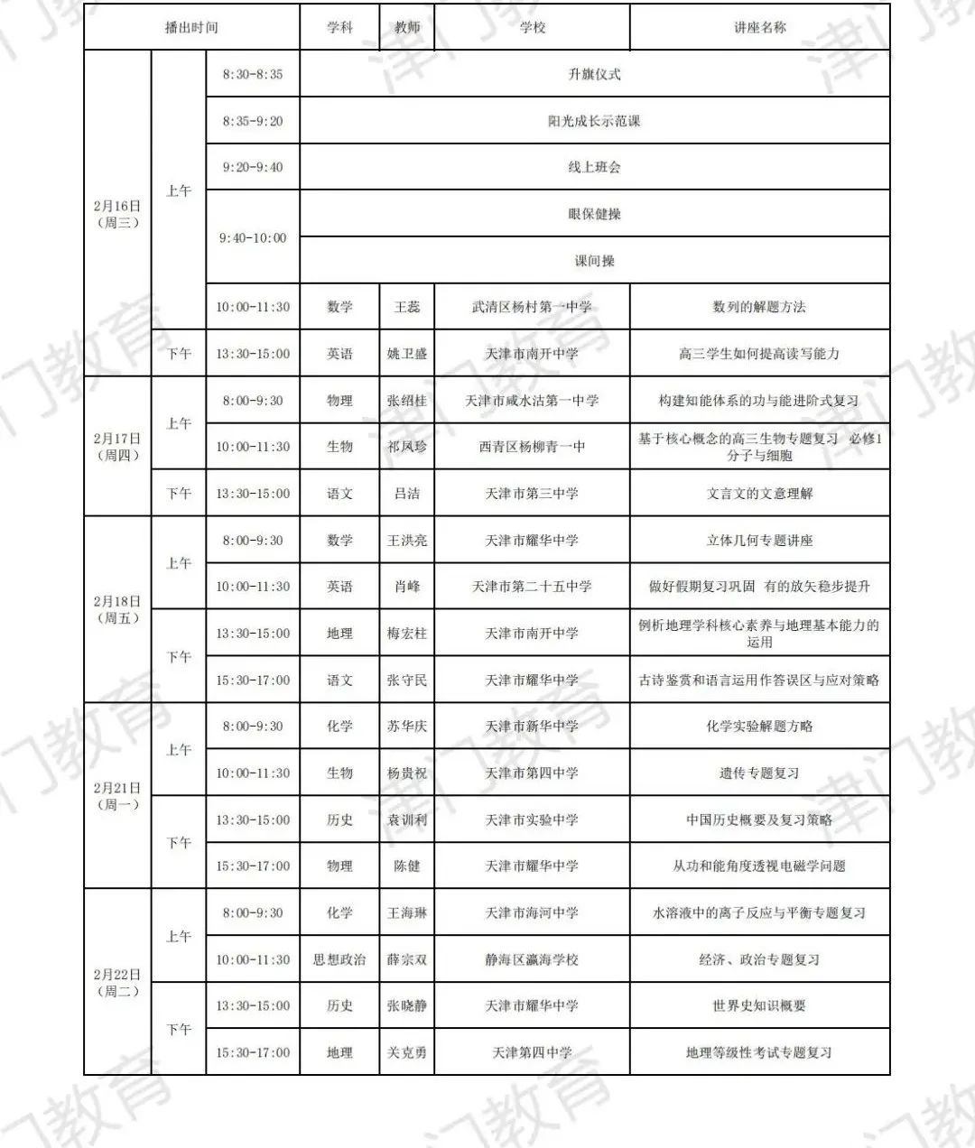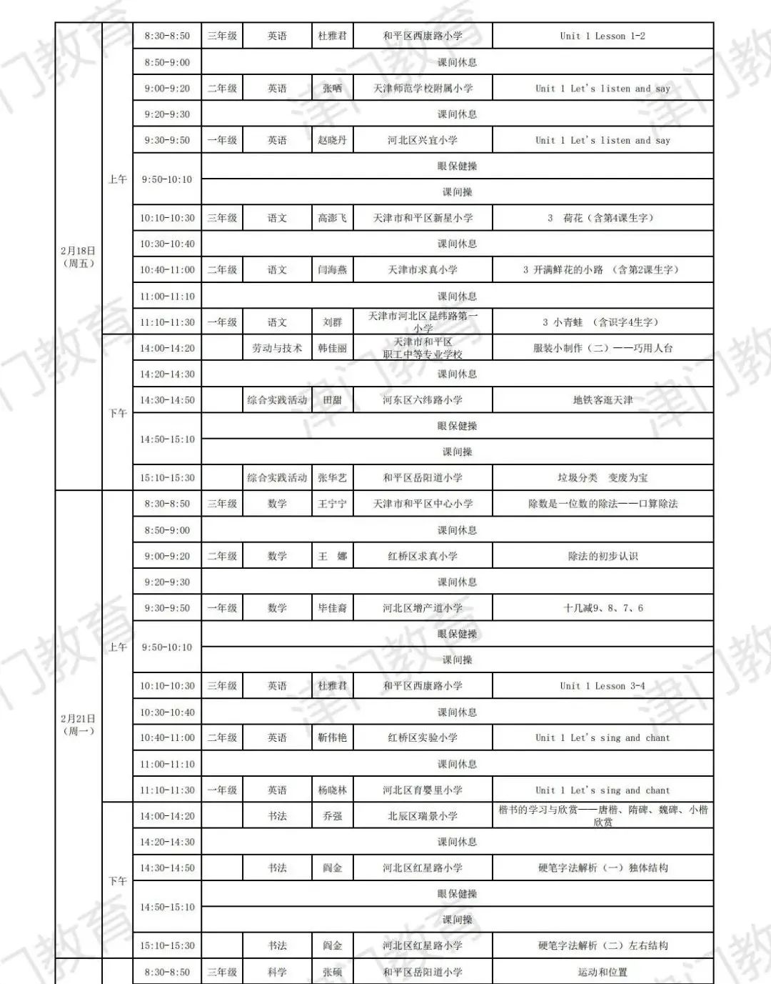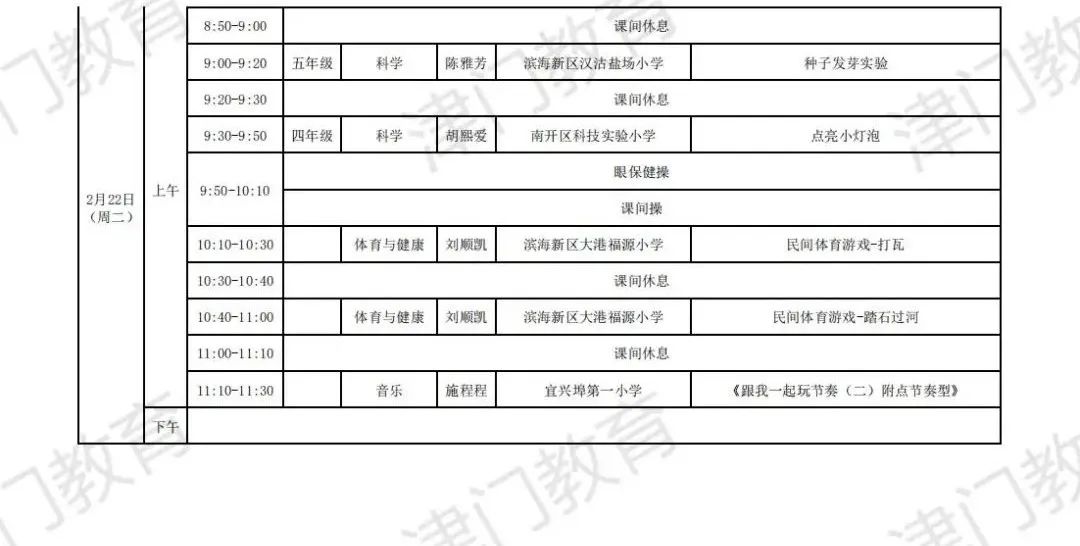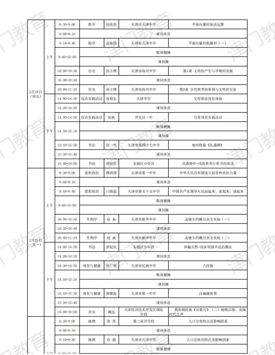 天津市教育委员会:2022年天津市中小学线上教学启动(附2月16日-22日课表)03-04
