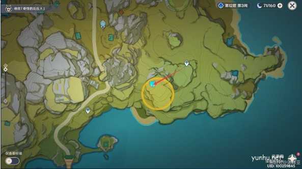 丘丘人位置:下图黄圈内右下部分标记的地方