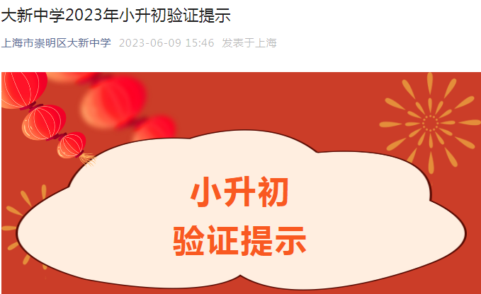 祝贺你将成为上海市崇明区大新中学的一员!在这里你将开启全新的初中学习之旅,请收下这份入学验证提示。