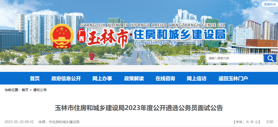 2023年广西玉林市住房和城乡建设局遴选公务员面试时间:6月4日06-02