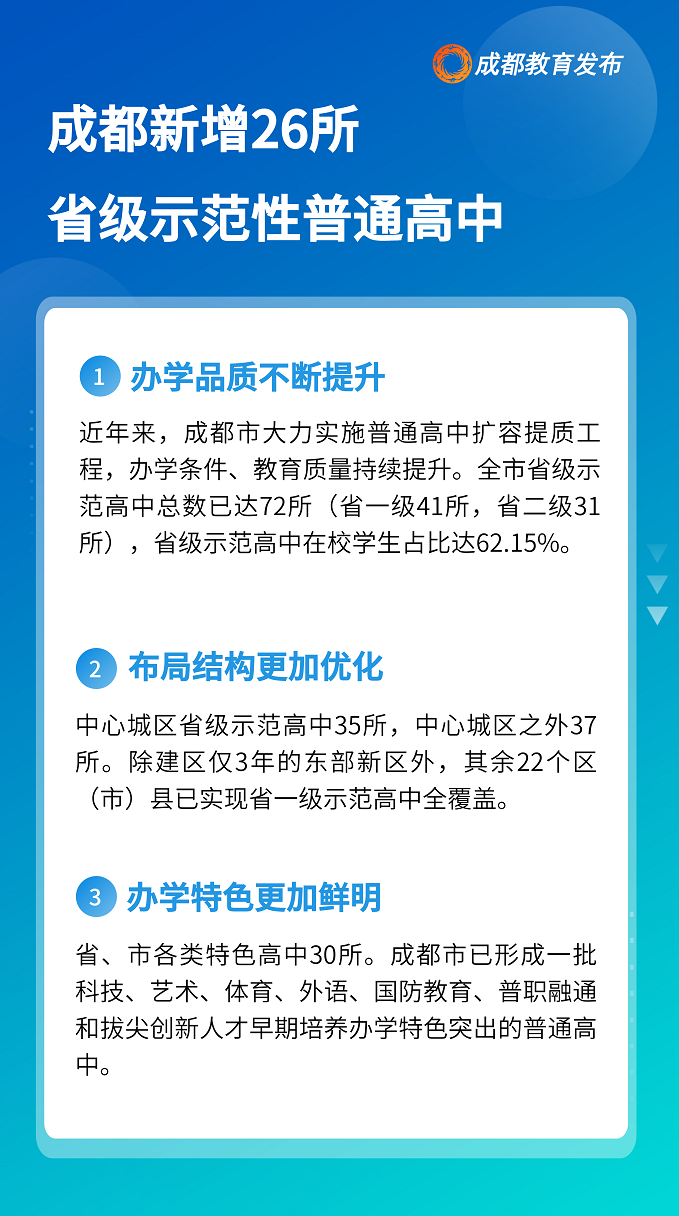 近日,省教育厅印发通知,成都共有8所学校被认定为省一级示范高中,18所学校被认定为省二级示范高中,省级示范高中都有什么特点?,新晋省级示范高中都有哪些?