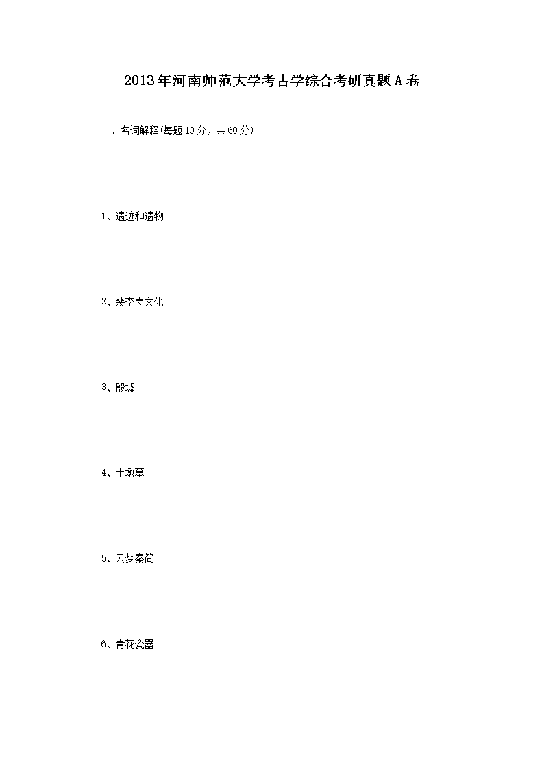 2013年河南师范大学考古学综合考研真题A卷(Word版)06-16