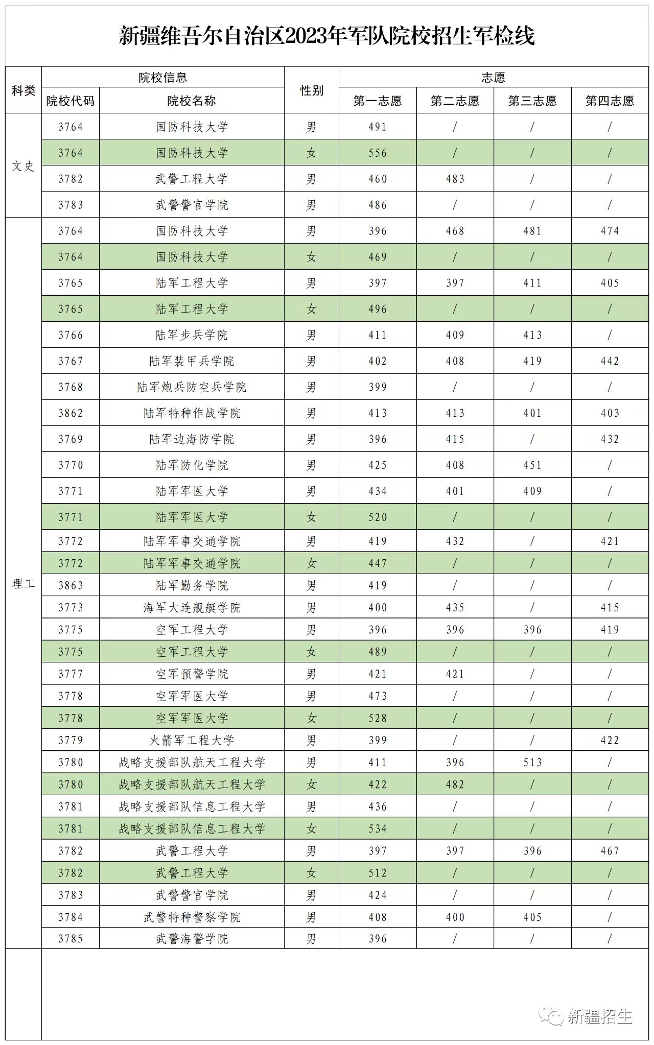 附件:新疆维吾尔自治区2023年军队院校招生军检线