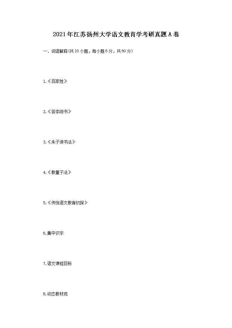 2021年江苏扬州大学语文教育学考研真题A卷(Word版)08-30