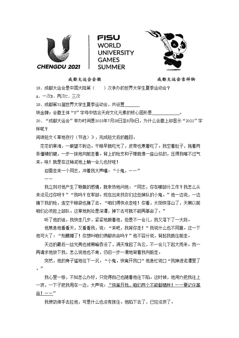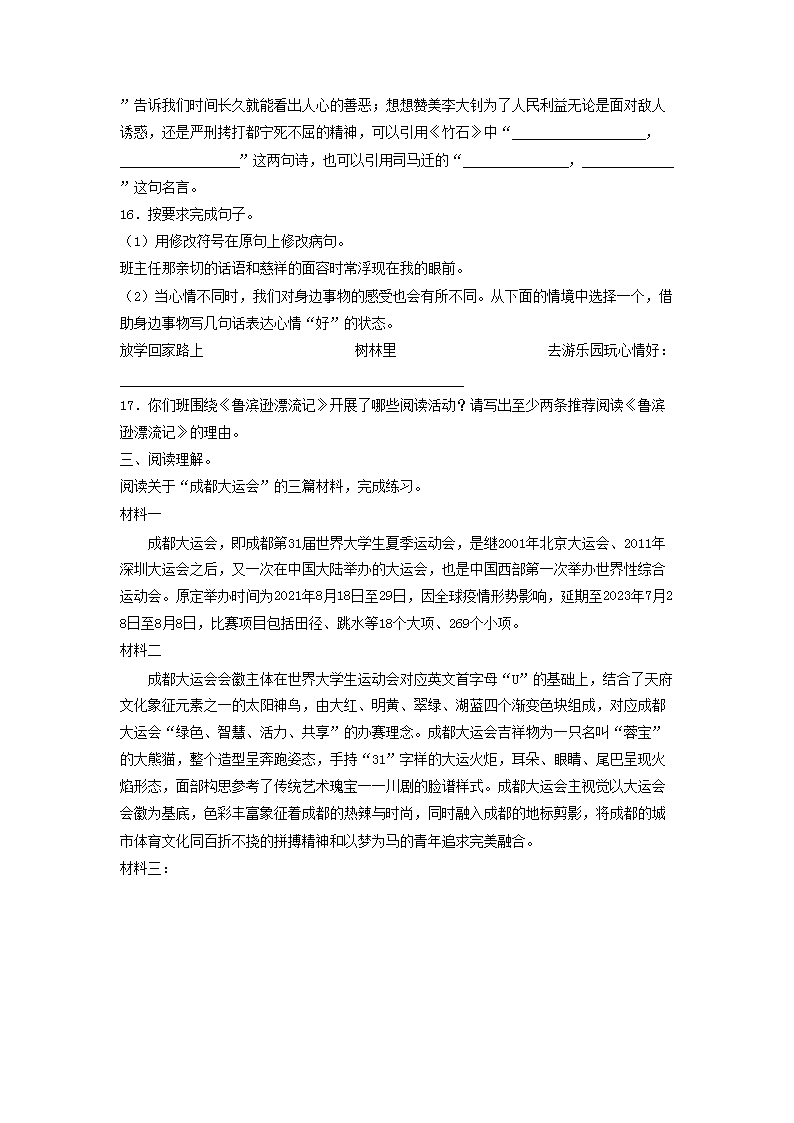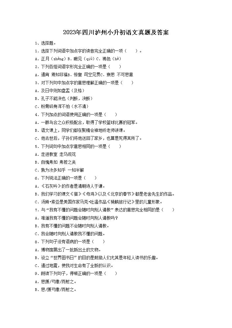 【文档预览】 文档大全网整理发布2023年四川泸州小升初语文真题及答案(Word版),前五页预览如下: