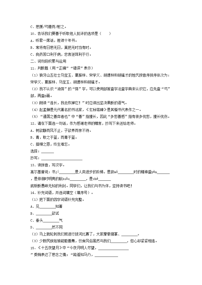 2023年四川泸州小升初语文真题及答案(Word版)09-27