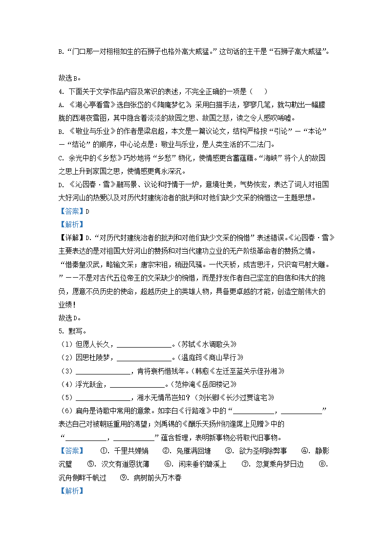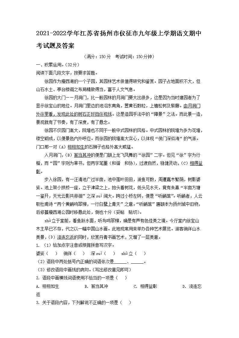 2021-2022学年江苏省扬州市仪征市九年级上学期语文期中考试题及答案(Word版)09-14
