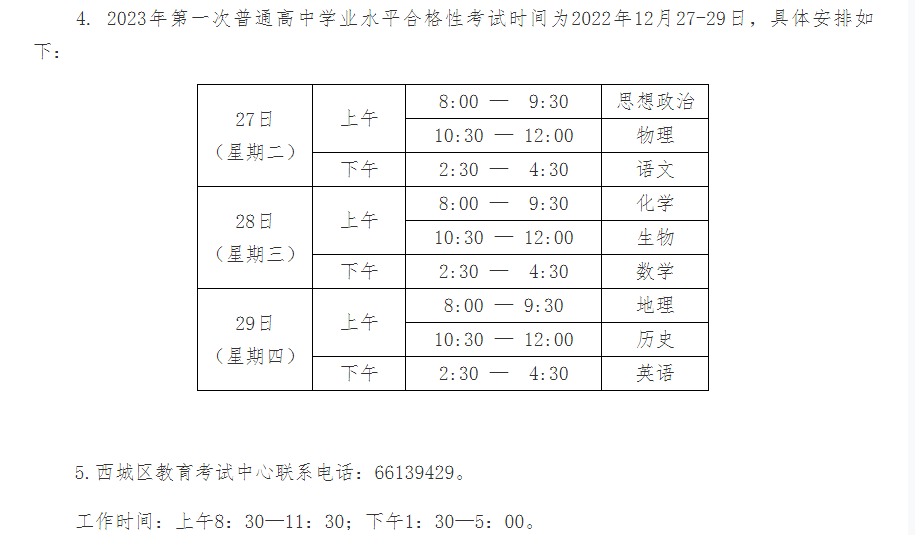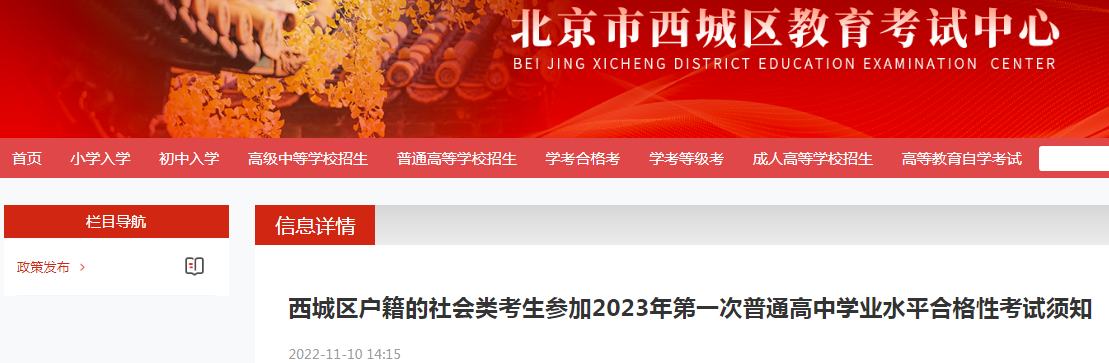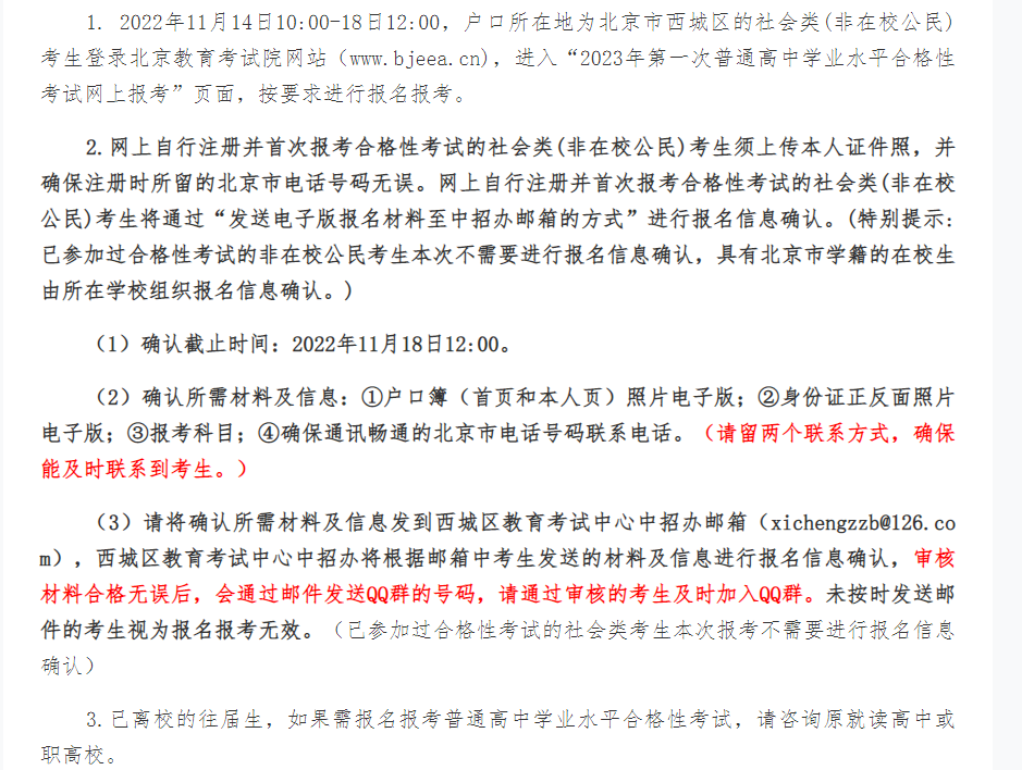 北京西城区户籍的社会类考生参加2023年第一次普通高中学业水平合格性考试须知11-11