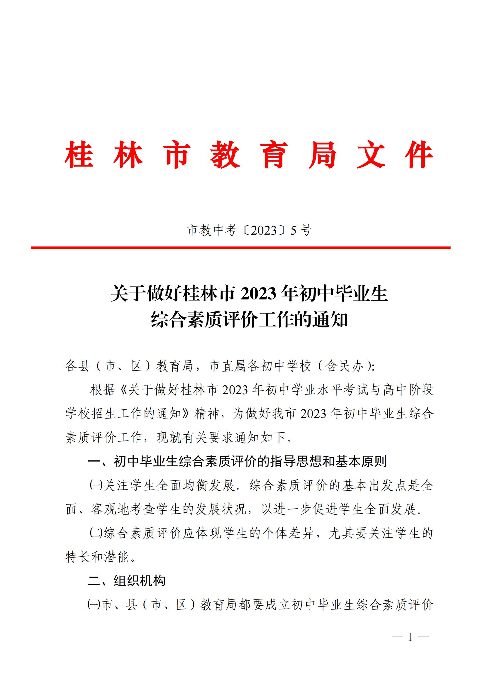 原文标题:市教中考〔2023〕5号 关于做好桂林市2023年初中毕业生综合素质评价工作的通知