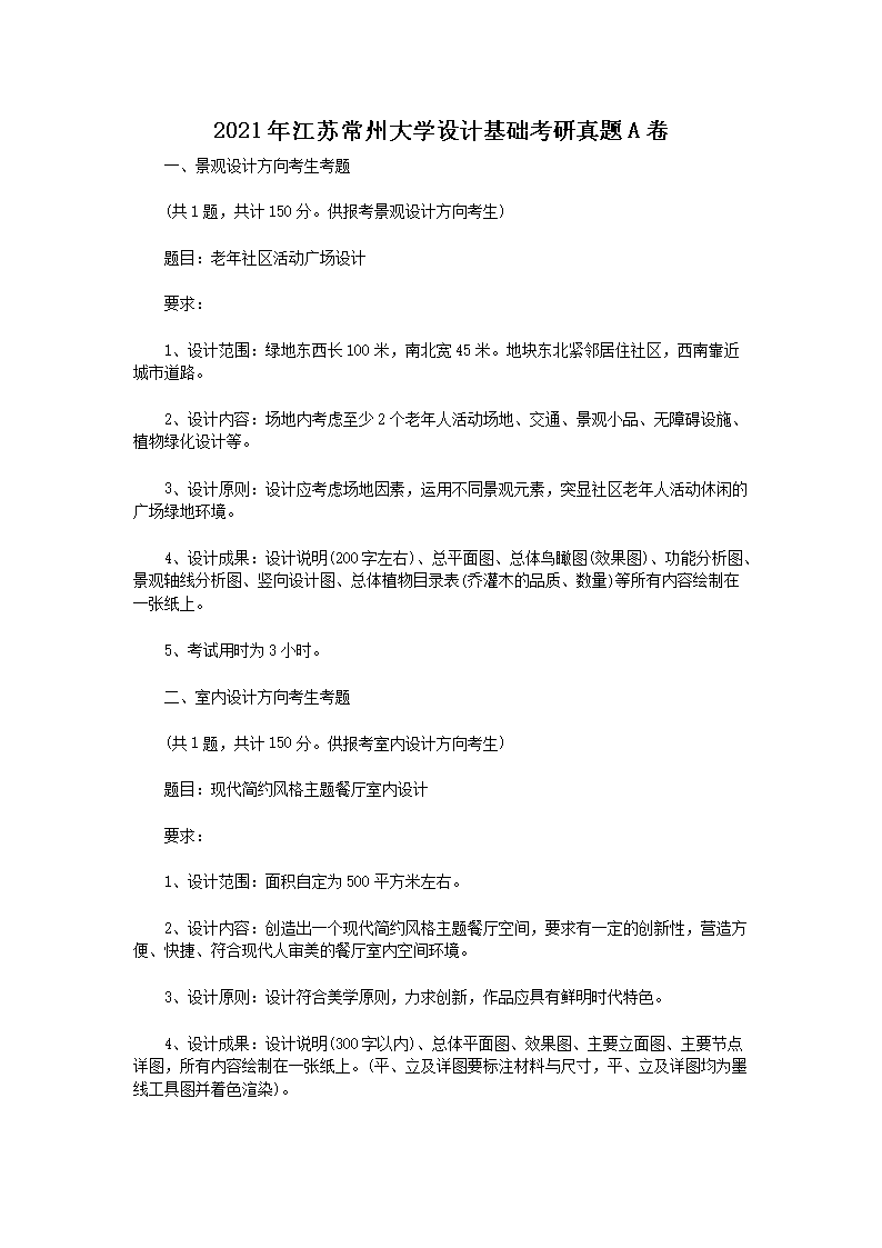2021年江苏常州大学设计基础考研真题A卷(Word版)09-01