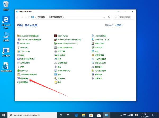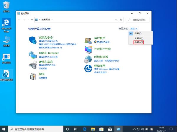 1、打开设备,进入控制面板,将查看方式调整为“小图标”;