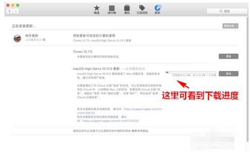 7、点击之后,系统就会自动连接到苹果的服务器对更新进行下载了。等到下载完成后,还会自动重启系统进行安装。此时,我们要做的只是静静等待就行了。