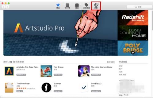 3、打开应用商店的窗口以后,点击切换到“更新”。