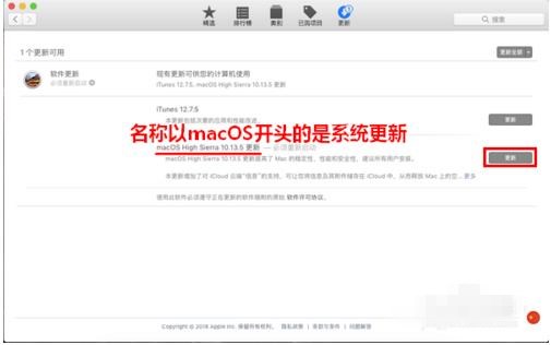 5、等到展开更新列表之后,名称中以MacOS开头的更新便是系统更新。若是只想安装系统更新,则可以点击其后的“更新”按钮。