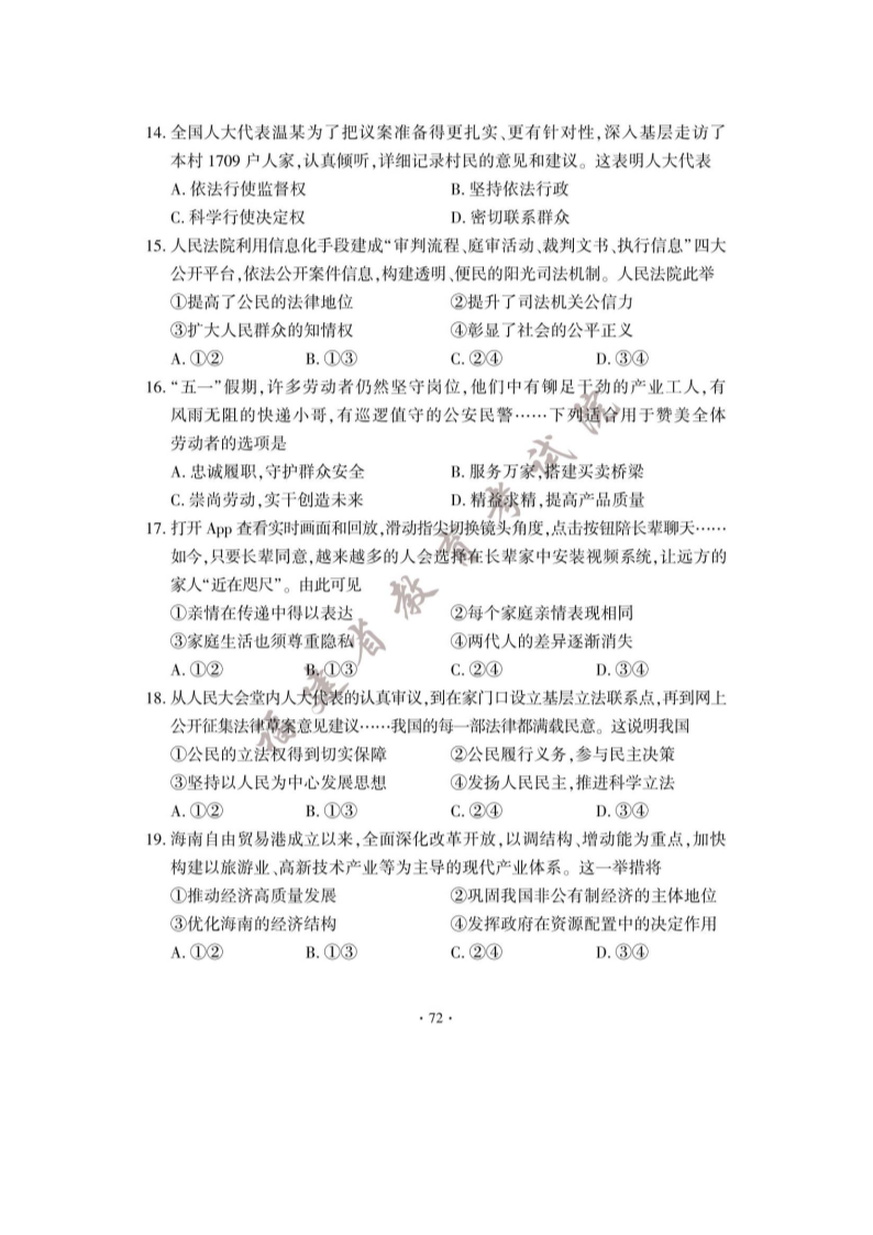 【文档预览】 文档大全网整理发布2023年福建宁德中考道德与法治试题及答案(图片版),前五页预览如下: