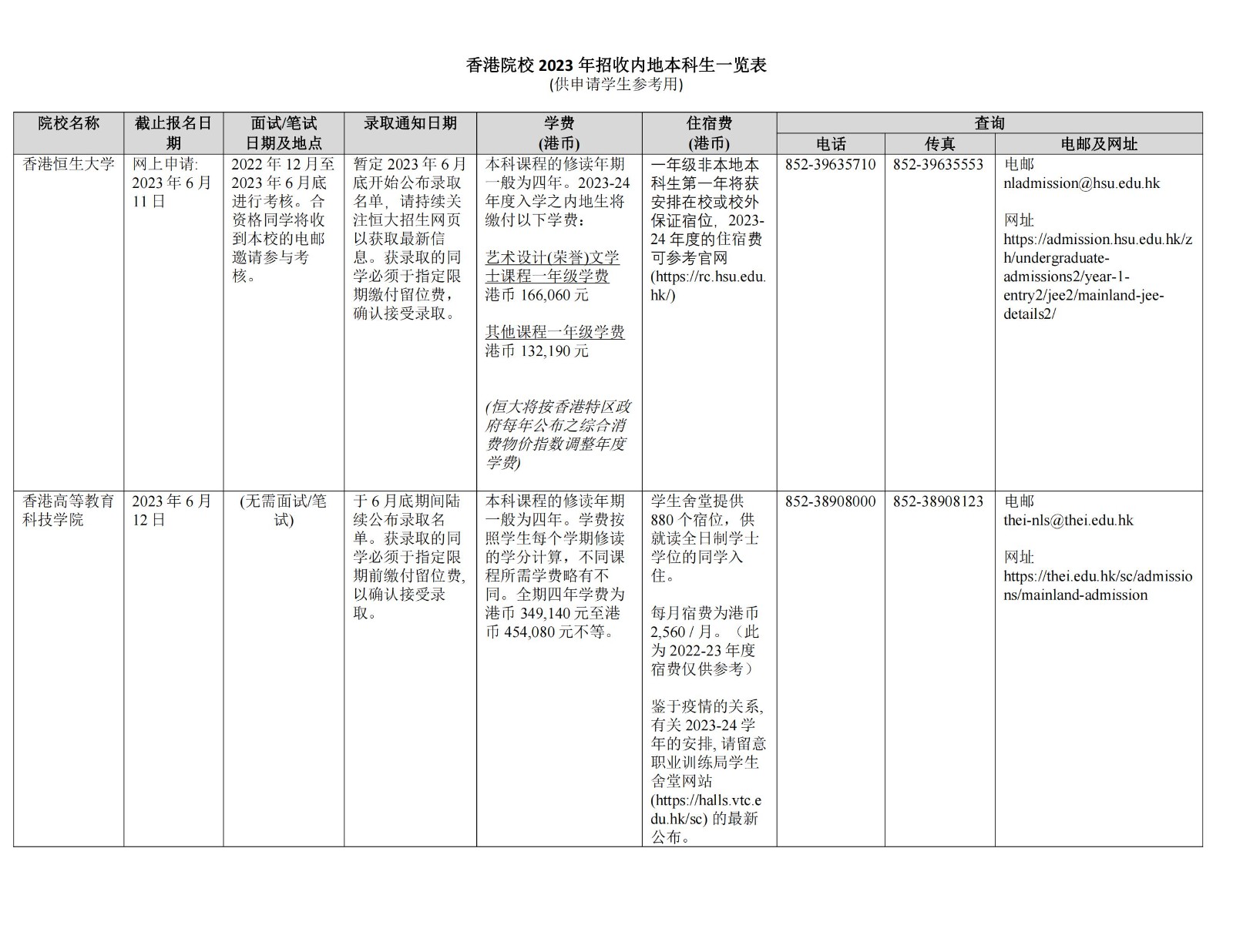 原文标题:香港院校2023年招收内地本科生一览表