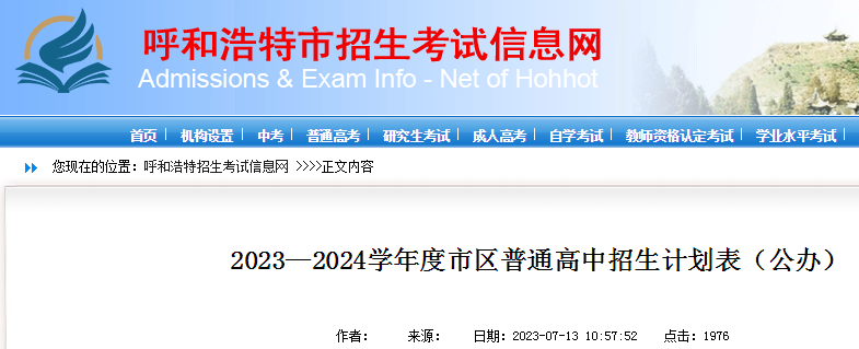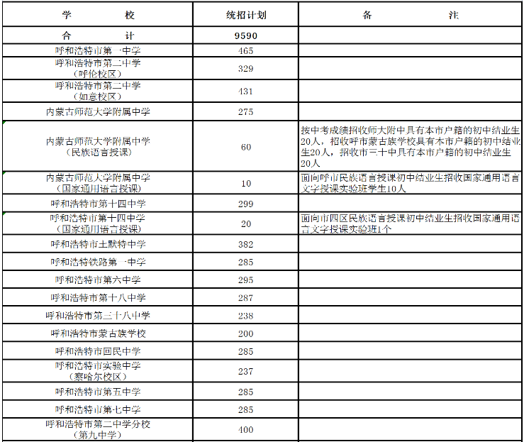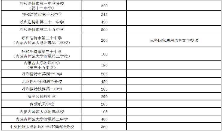 2023—2024学年度内蒙古呼和浩特市区普通高中招生计划表(公办)07-14