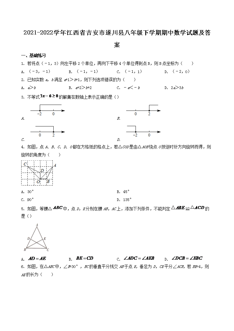 2021-2022学年江西省吉安市遂川县八年级下学期期中数学试题及答案(Word版)10-13