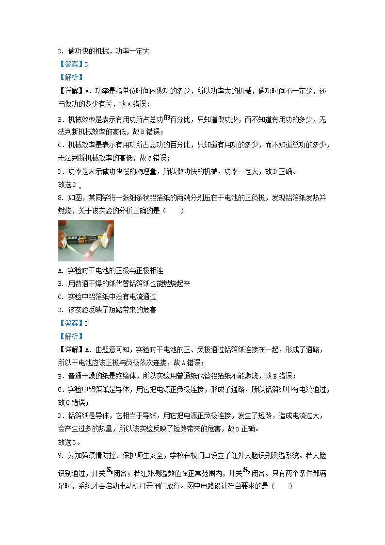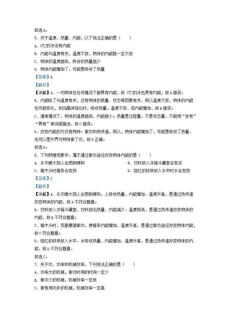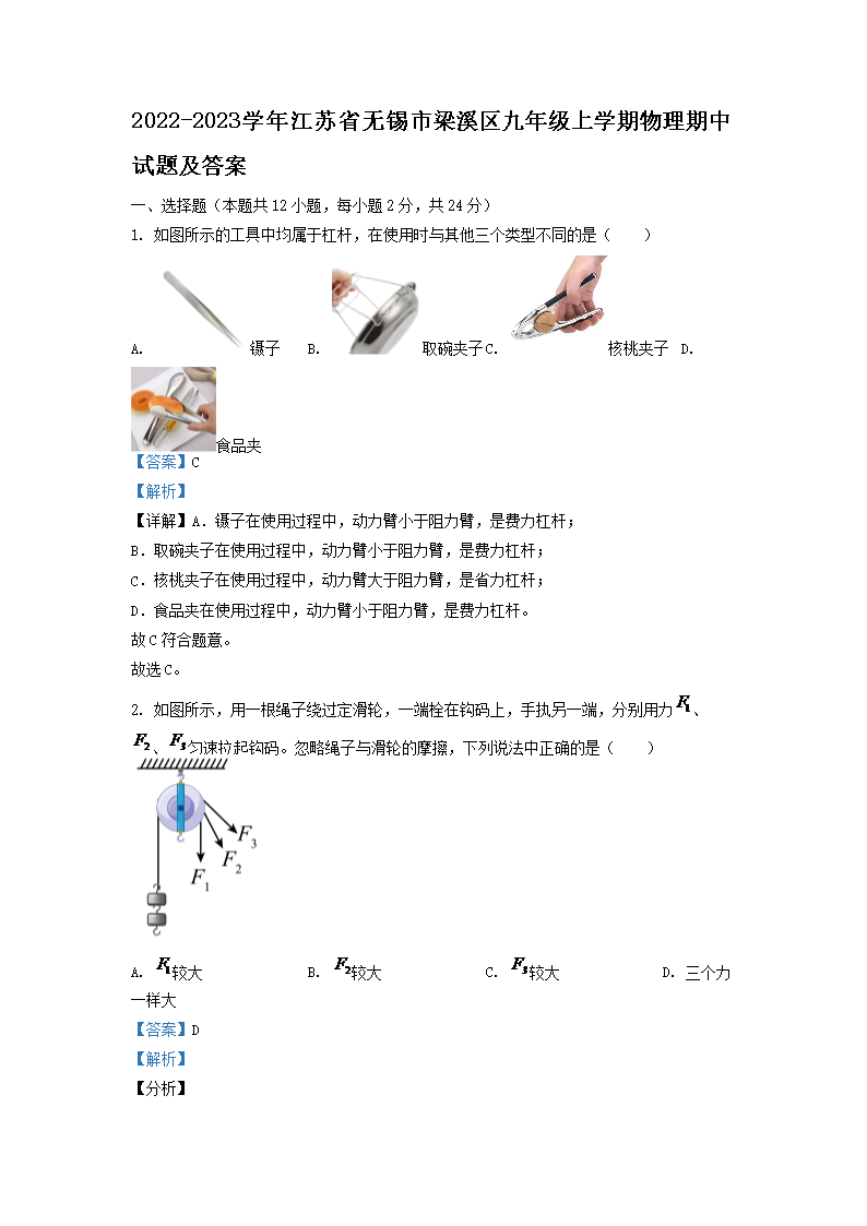 2022-2023学年江苏省无锡市梁溪区九年级上学期物理期中试题及答案(Word版)10-14