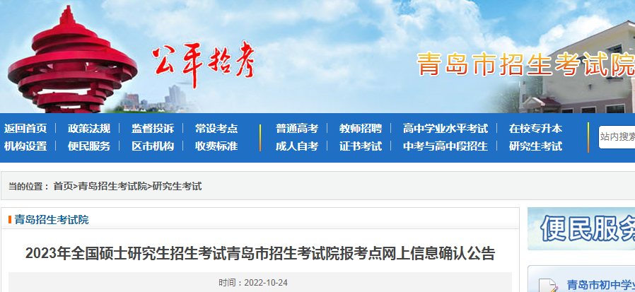 2023年全国硕士研究生招生考试山东青岛市招生考试院报考点网上信息确认公告10-25
