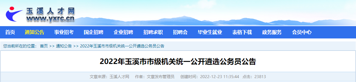 原文标题:2022年玉溪市市级机关统一公开遴选公务员公告