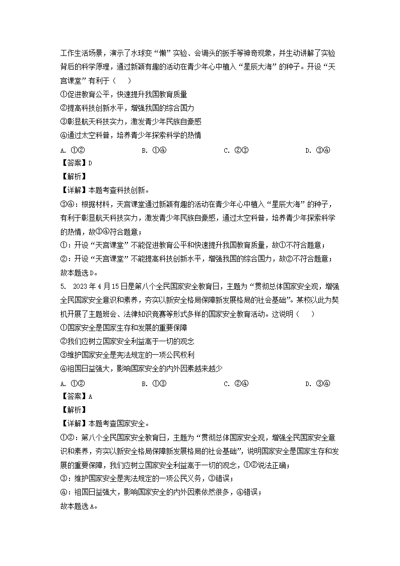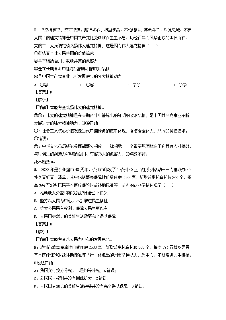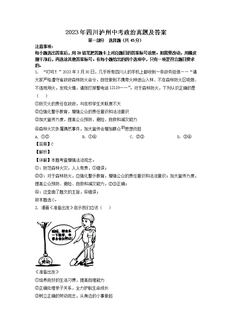 【文档预览】 文档大全网整理发布2023年四川泸州中考政治真题及答案(Word版),前五页预览如下:
