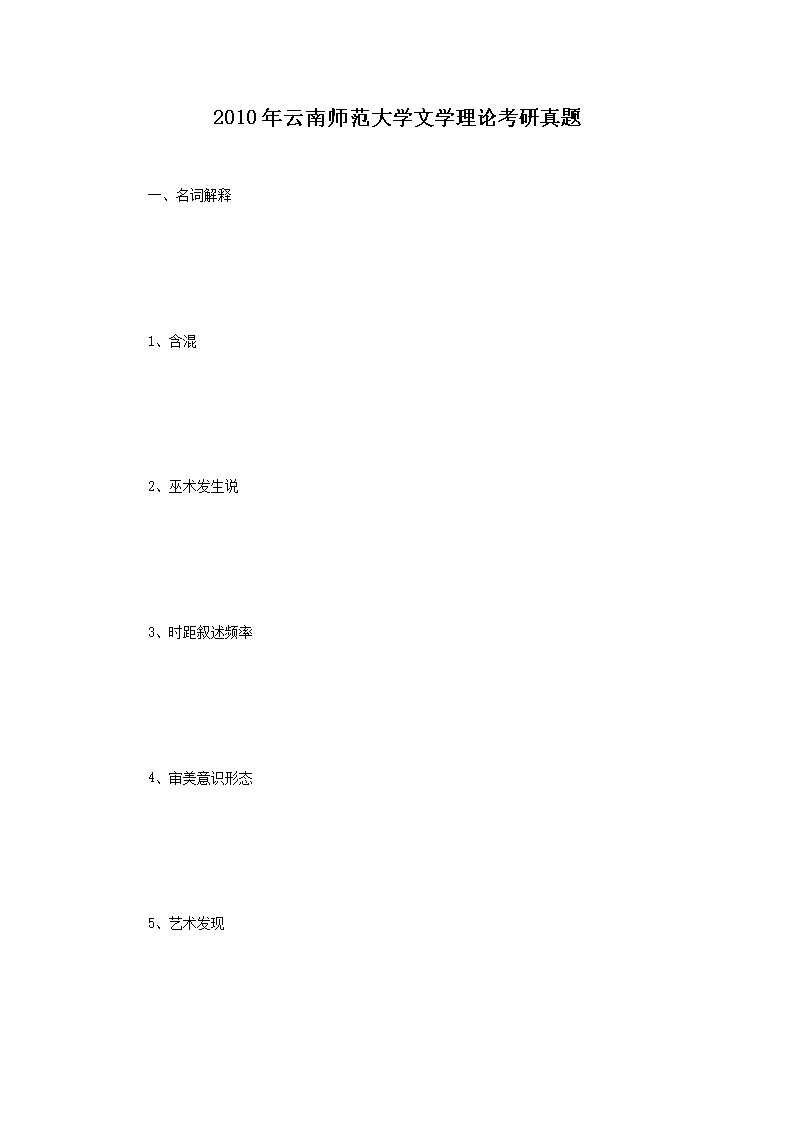【文档预览】 文档大全网整理发布2010年云南师范大学文学理论考研真题(Word版),前五页预览如下: