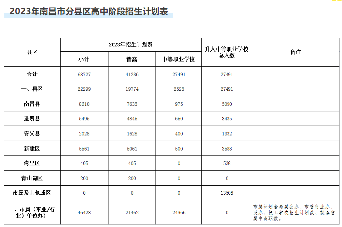 【#中考# 导语】©文档大全网从南昌教育公众号了解到,2023年江西南昌市分县区高中阶段招生计划出炉,相关事宜如下: