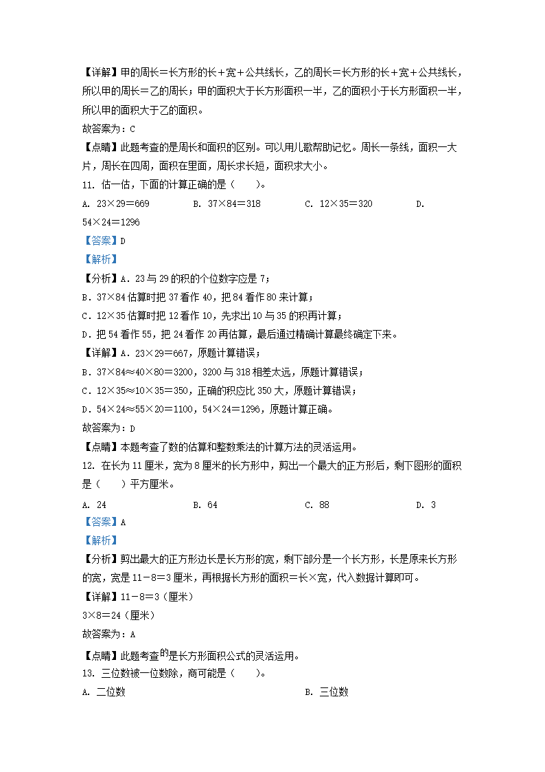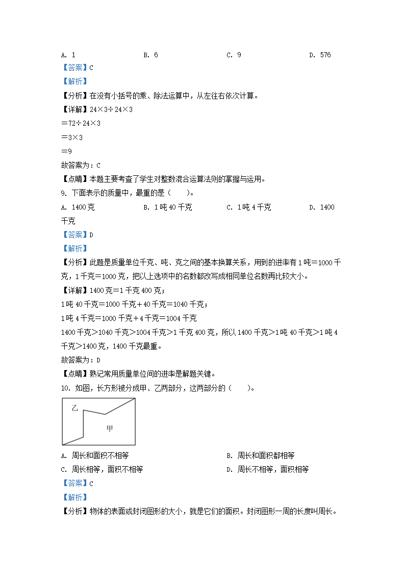 2021-2022学年广东省深圳市坪山区北师大版三年级下册期末考试数学试卷及答案(Word版)08-26