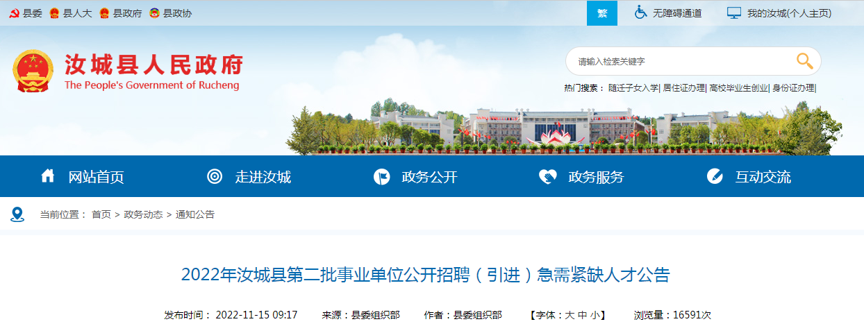 3.招聘各环节相关信息指定在汝城县人民政府门户网站发布。
