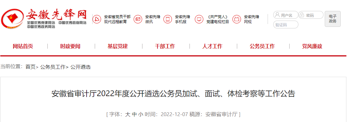 原文标题:安徽省审计厅2022年度公开遴选公务员加试、面试、体检考察等工作公告