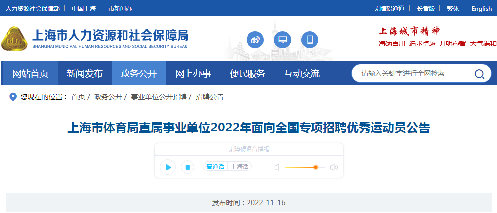 2022年上海市体育局直属事业单位面向全国专项招聘优秀运动员公告11-17