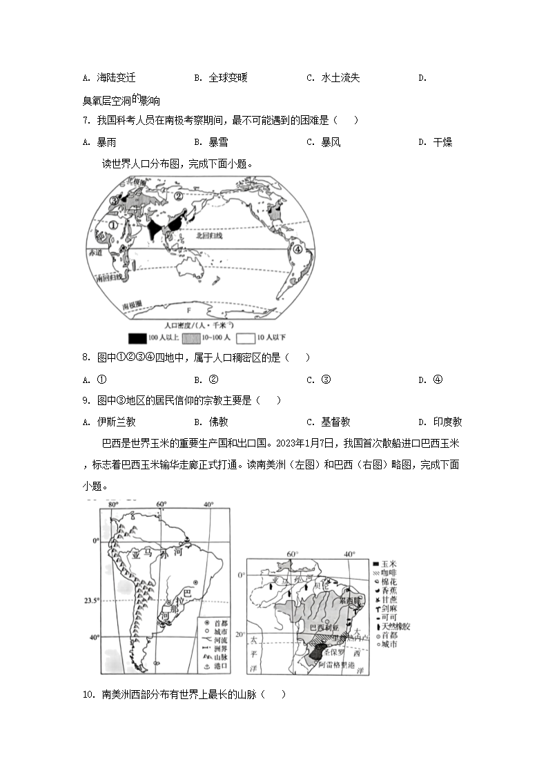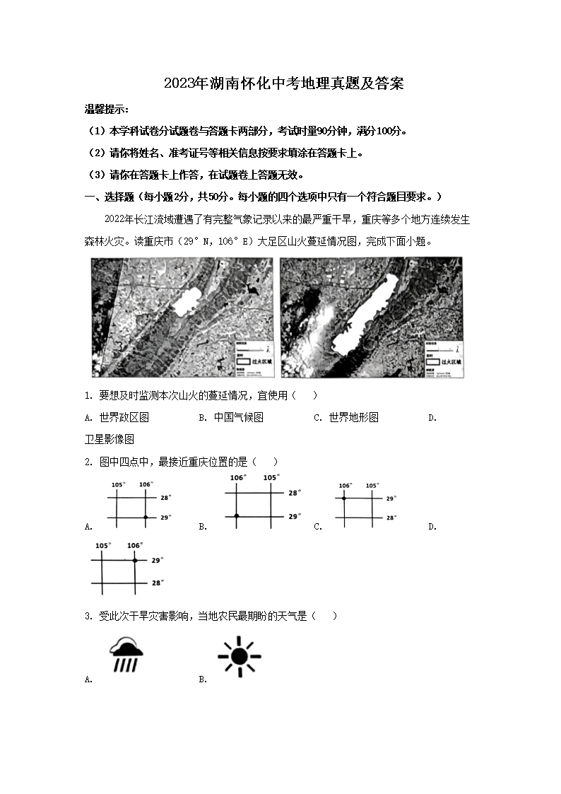 2023年湖南怀化中考地理真题及答案(Word版)09-13
