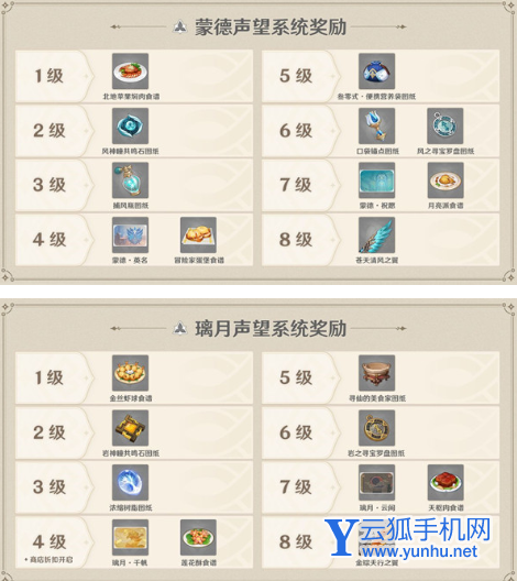 声望达到一定等级后,可以获取对应食谱奖励。