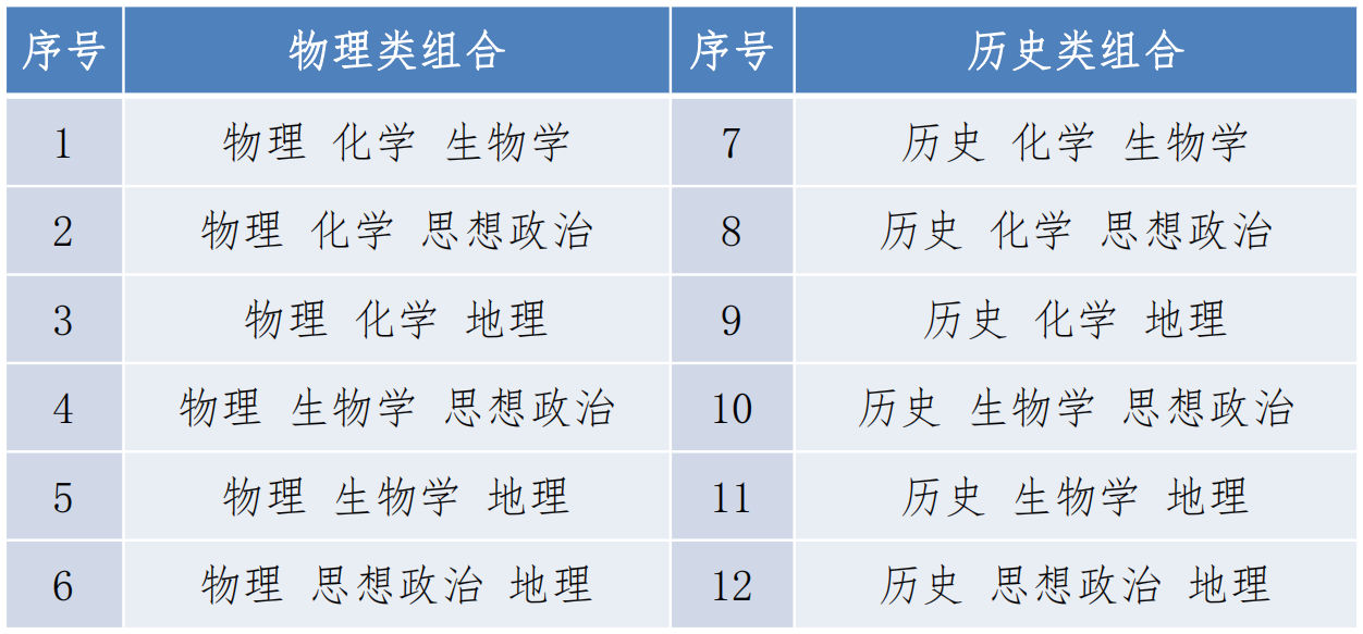 选择性考试科目理论上有12种组合,具体如下:
