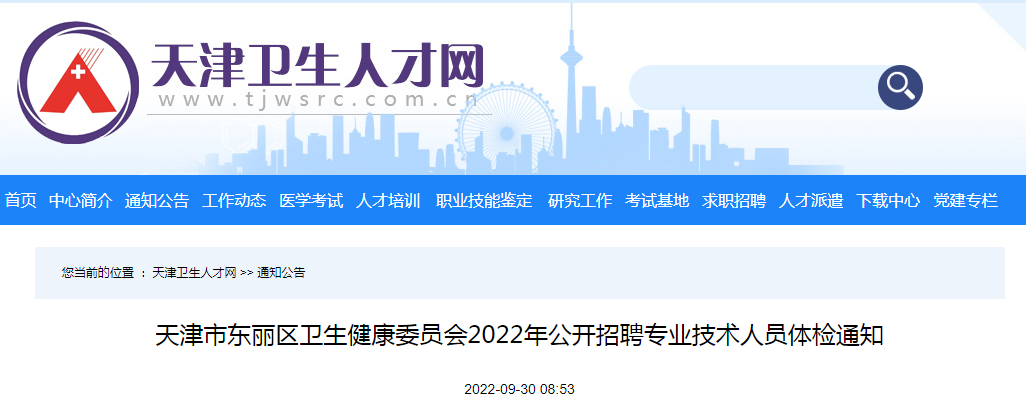 2022年天津市东丽区卫生健康委员会公开招聘专业技术人员体检通知10-01