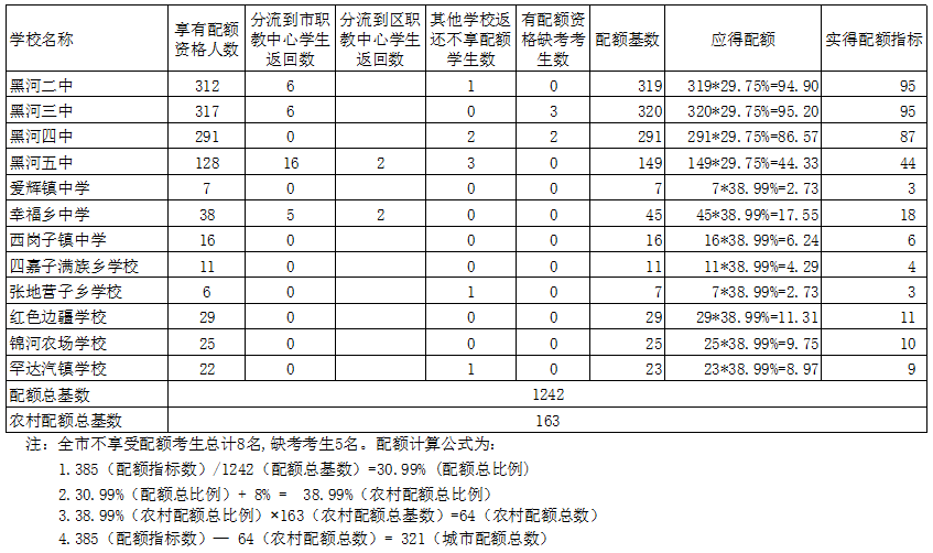 黑龙江黑河2023年中考各校配额基数和配额数公示(公示期7月6日—7月12日)07-08