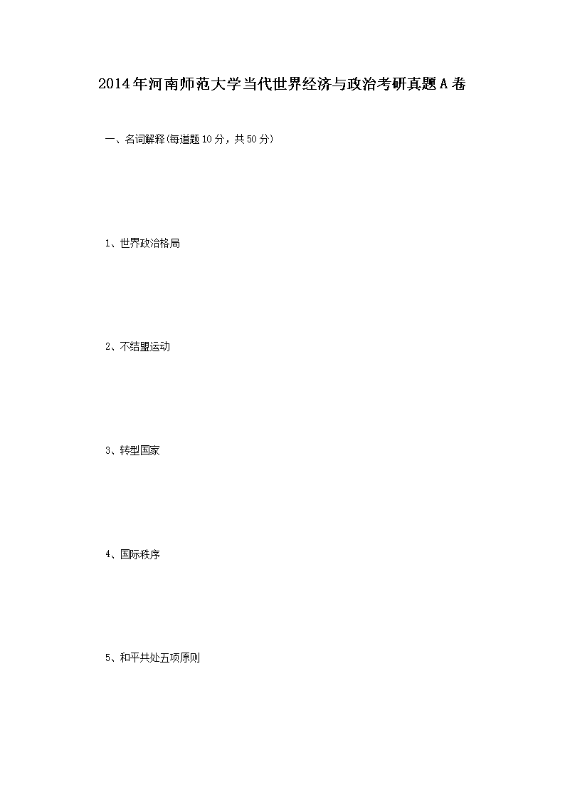 2014年河南师范大学当代世界经济与政治考研真题A卷(Word版)06-08