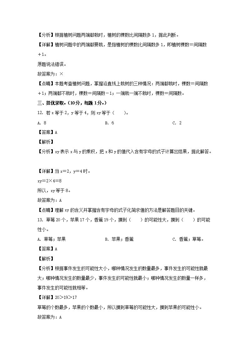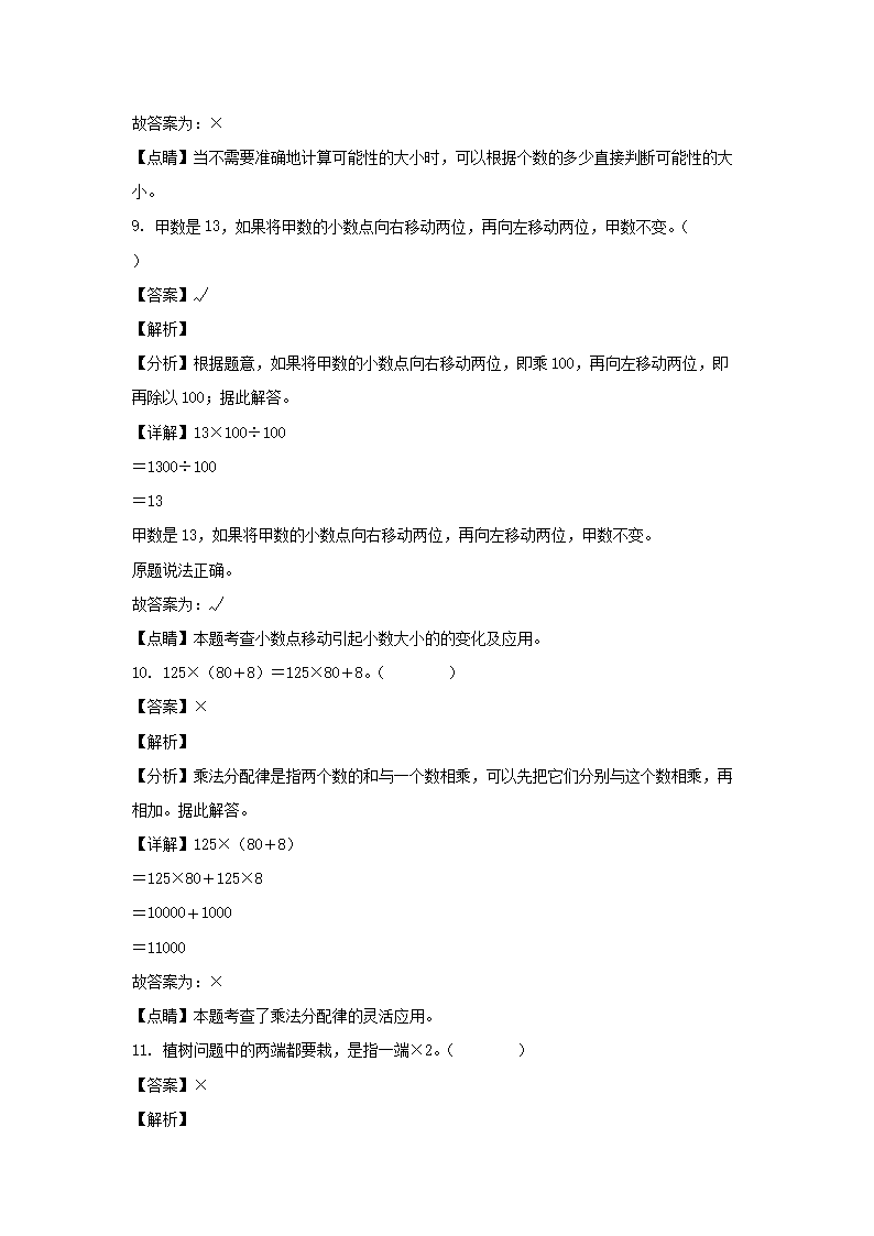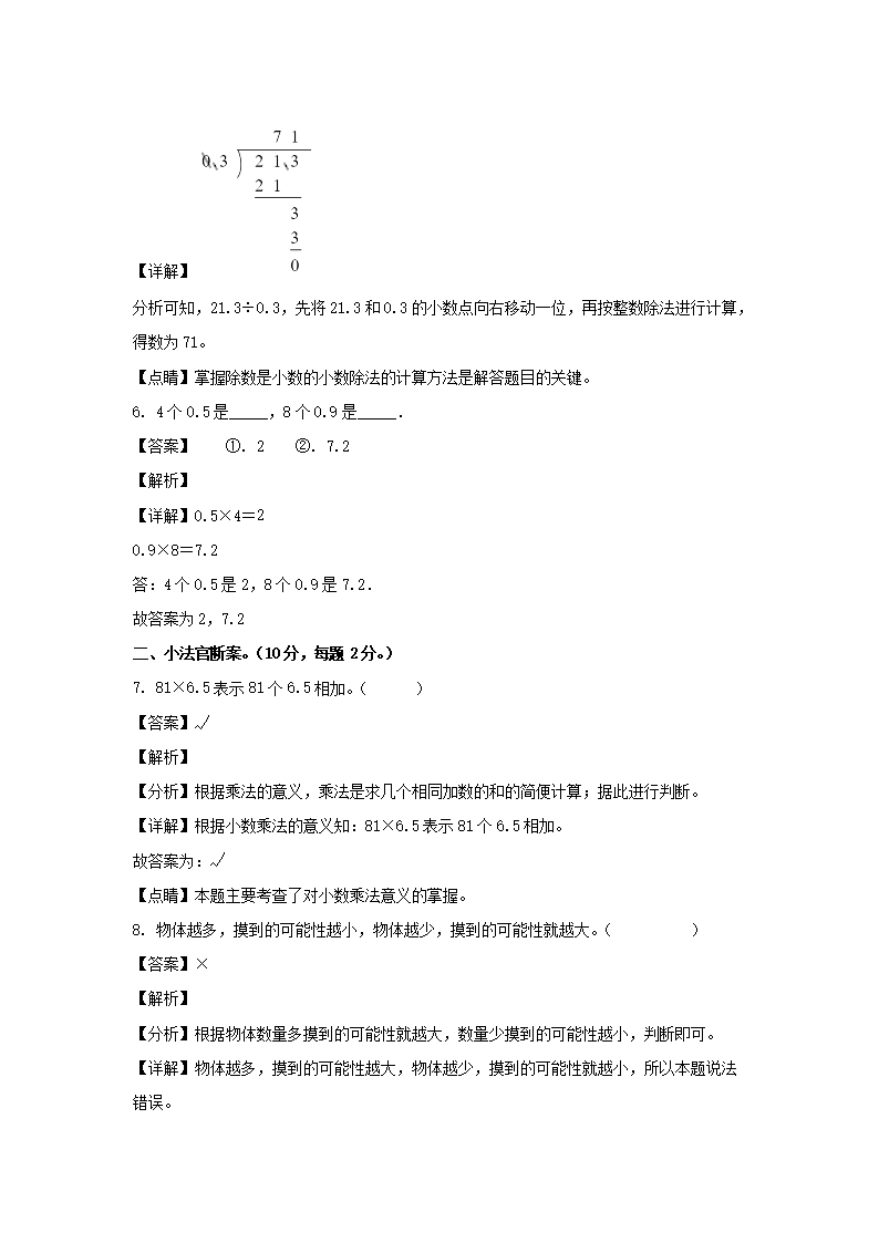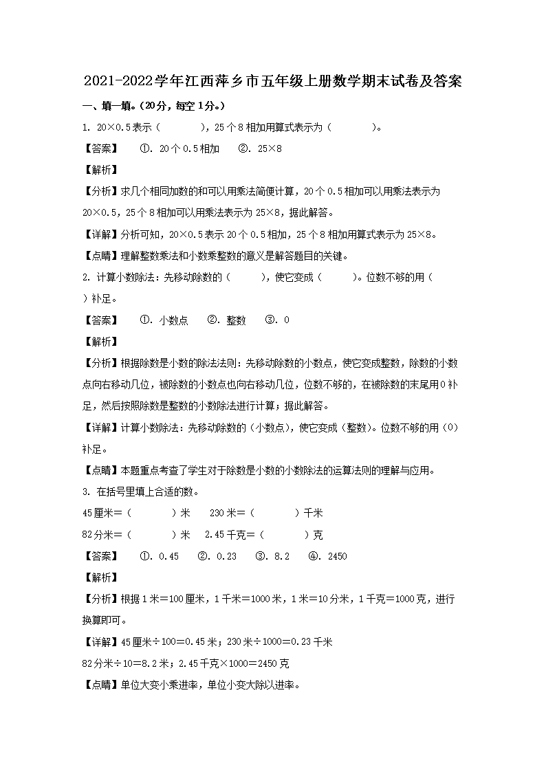 2021-2022学年江西萍乡市五年级上册数学期末试卷及答案(Word版)09-08