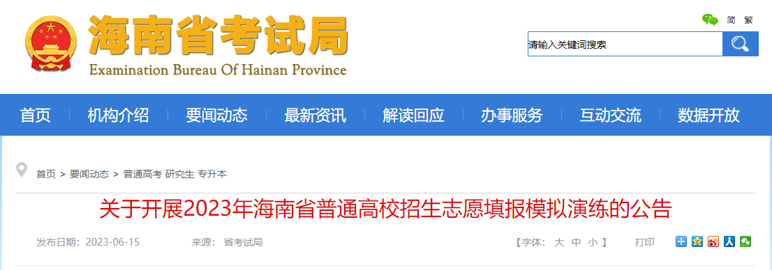 2023年海南省普通高校招生志愿填报模拟演练公告(演练时间:6月16日-18)06-17
