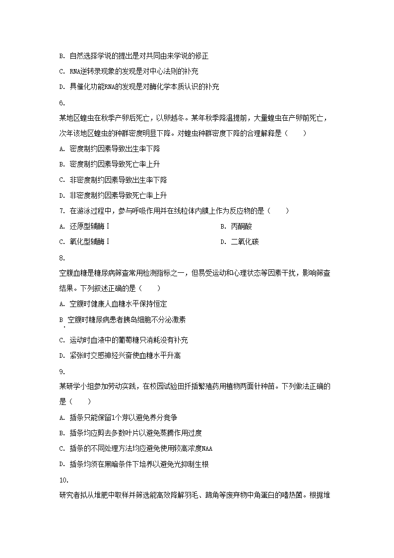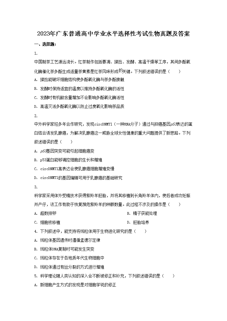 2023年广东普通高中学业水平选择性考试生物真题及答案(Word版)06-16