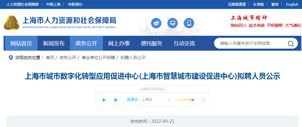 原文标题:上海市城市数字化转型应用促进中心(上海市智慧城市建设促进中心)拟聘人员公示